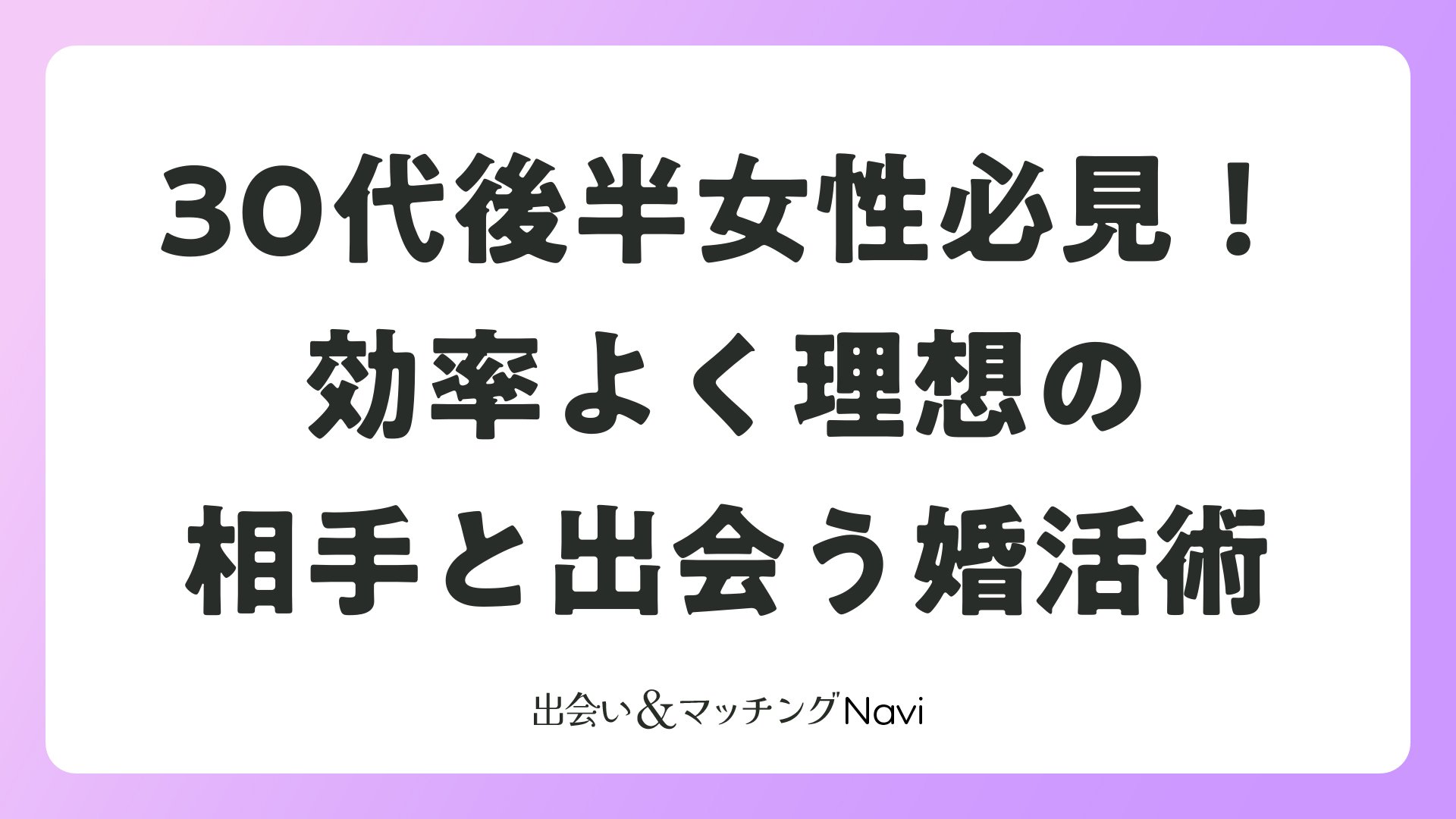30代後半女性必見!効率よく理想の相手と出会う婚活術をまとめました