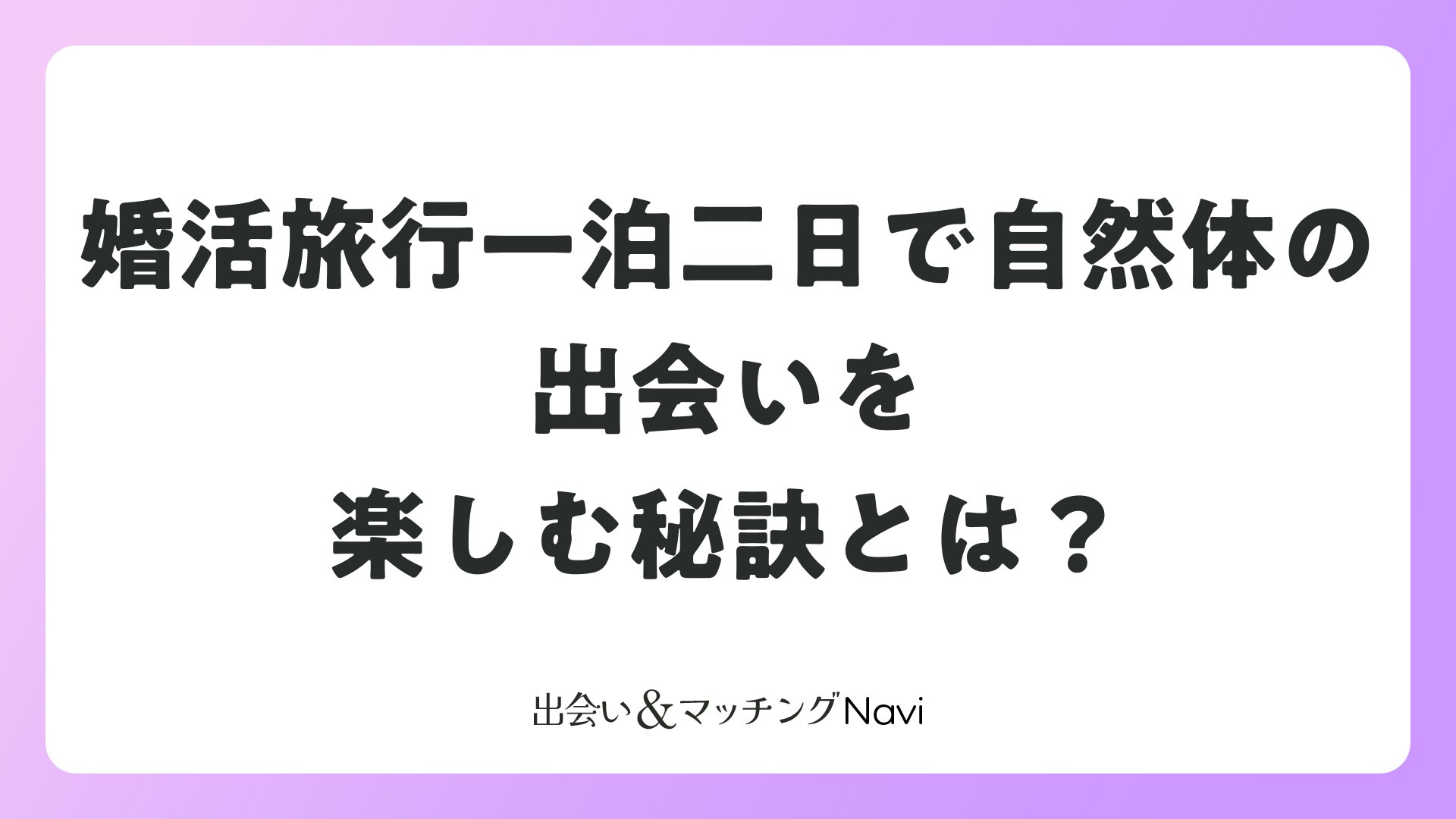 婚活旅行一泊二日で自然体の出会いを楽しむ秘訣とは?をまとめました