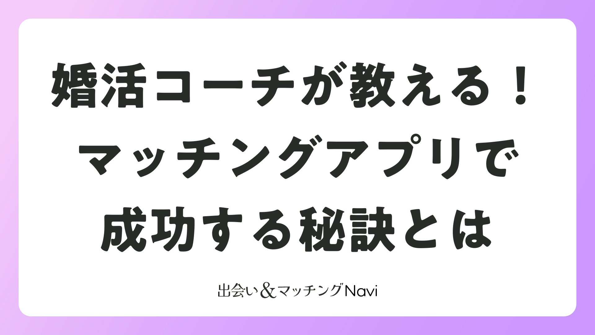 婚活コーチが教える!マッチングアプリで成功する秘訣とはをまとめました