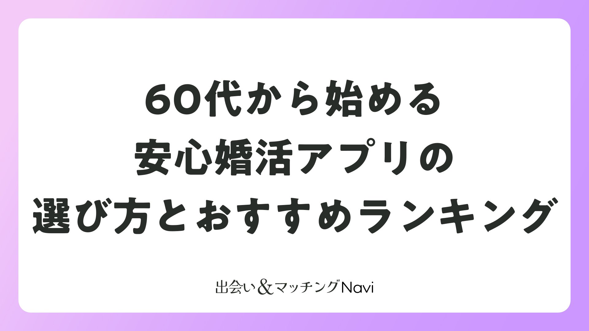60代から始める安心婚活アプリの選び方とおすすめランキングをまとめました