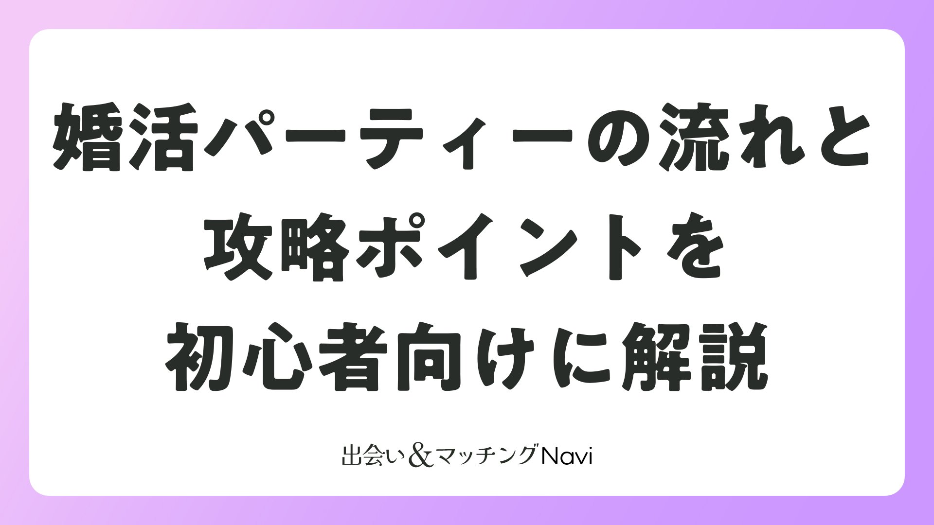婚活パーティーの流れと攻略ポイントを初心者向けに解説をまとめました