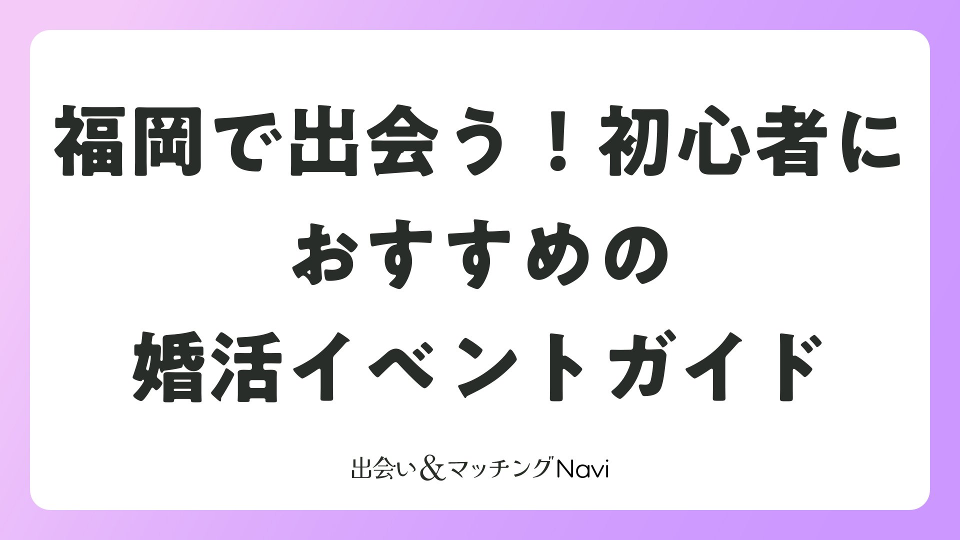 福岡の婚活イベントは多様な選択肢があり、真剣な出会いを求める方に最適。自治体主催の体験型から街コン、オンラインまで、目的に合わせて選べます。積極参加でアプリとの併用を心がければ、幸せな未来が近づきます。