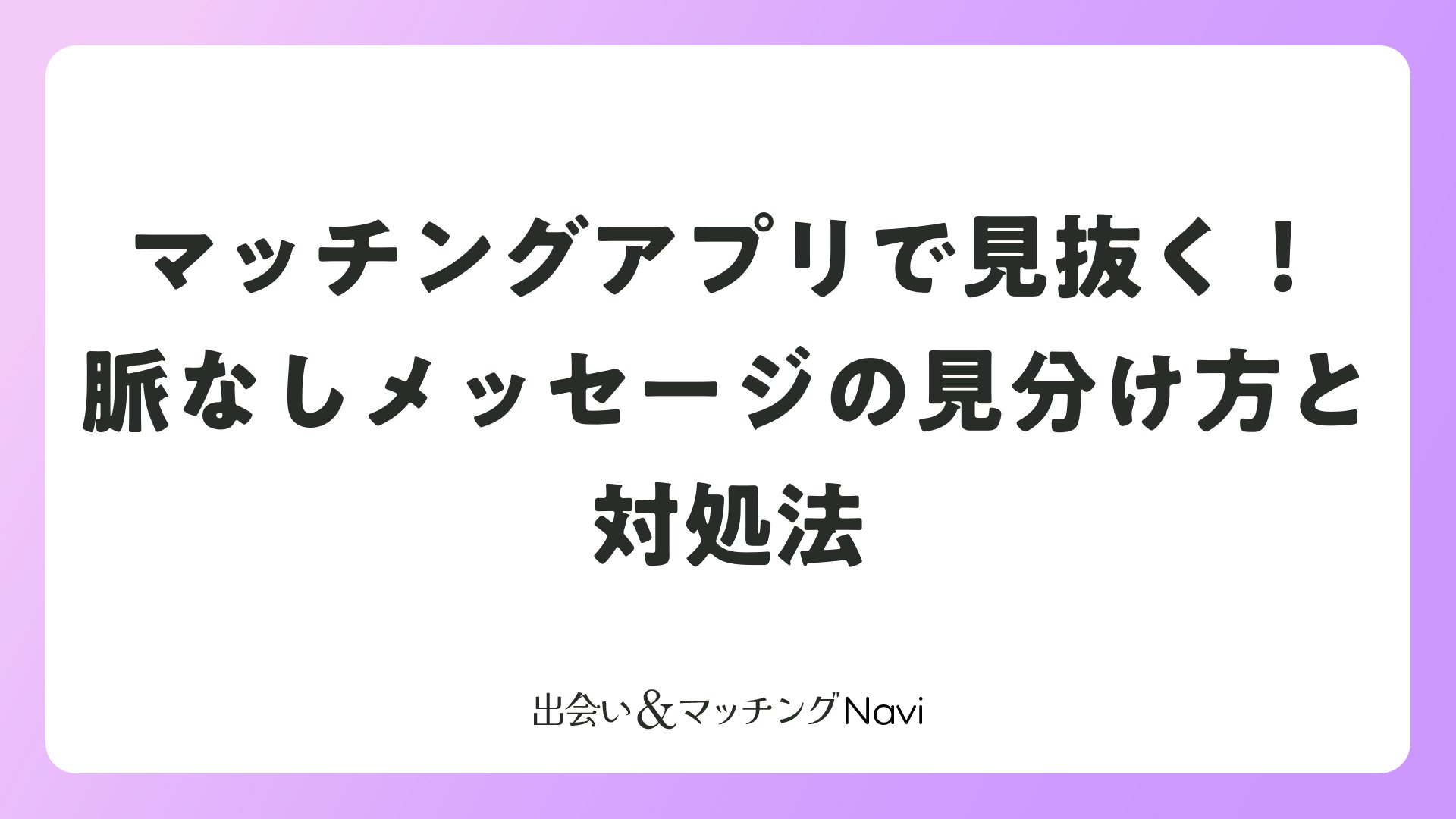 マッチングアプリで出会った相手とのやり取りで、相手の気持ちを読み取ることは難しいものです。特に脈なしのサインを見落とすと、時間を無駄にしてしまう可能性があります。本記事では、マッチングアプリにおける脈なしメッセージの特徴を詳しく解説し、効果的な対処法をご紹介します。
