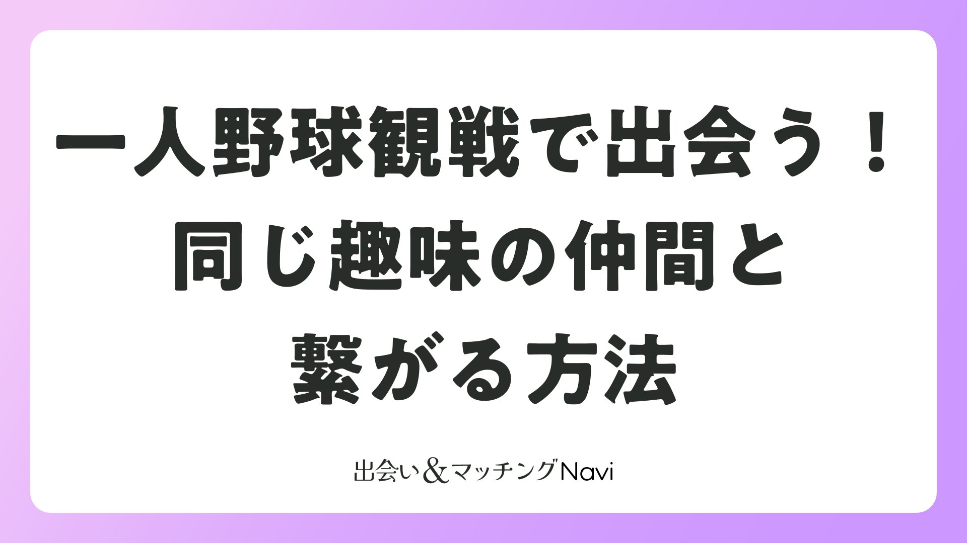 一人で野球観戦に行く人にとって、マッチングアプリを通じた出会いは、観戦体験をより豊かで充実したものに変える可能性を秘めています。