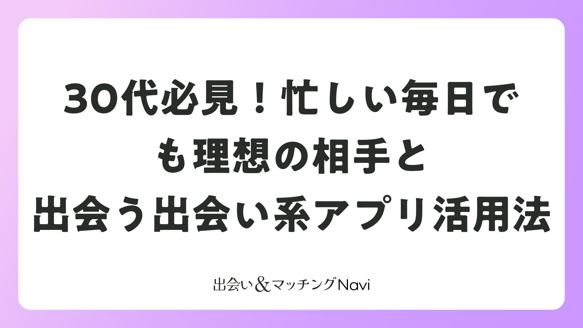 30代必見!忙しい毎日でも理想の相手と出会う出会い系アプリ活用法をまとめました