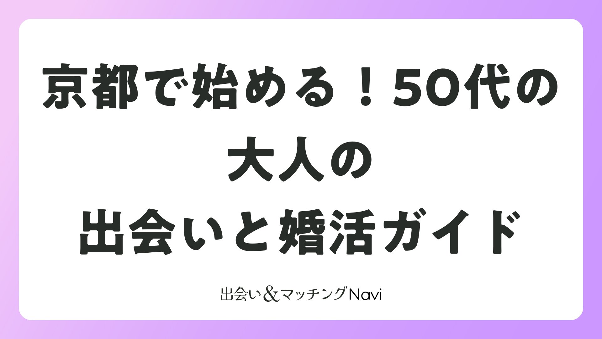 京都の50代出会いは、マッチングアプリ、婚活パーティー、相談所が充実し、誰でも素敵なパートナーを見つけやすい環境です。伝統の街で新しい恋を始めましょう。