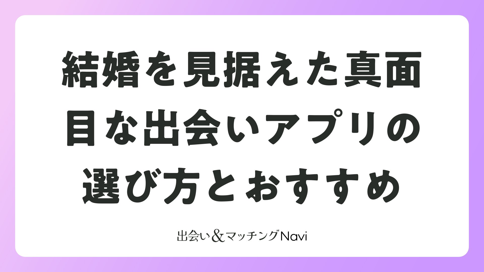 全国規模のアプリから婚活特化まで、多様な選択肢を活かし、自分らしい出会いを実現しましょう。2026年も、真剣な出会いがアプリから生まれ続けています。今日から始めて、素敵な出会いを掴んでください。