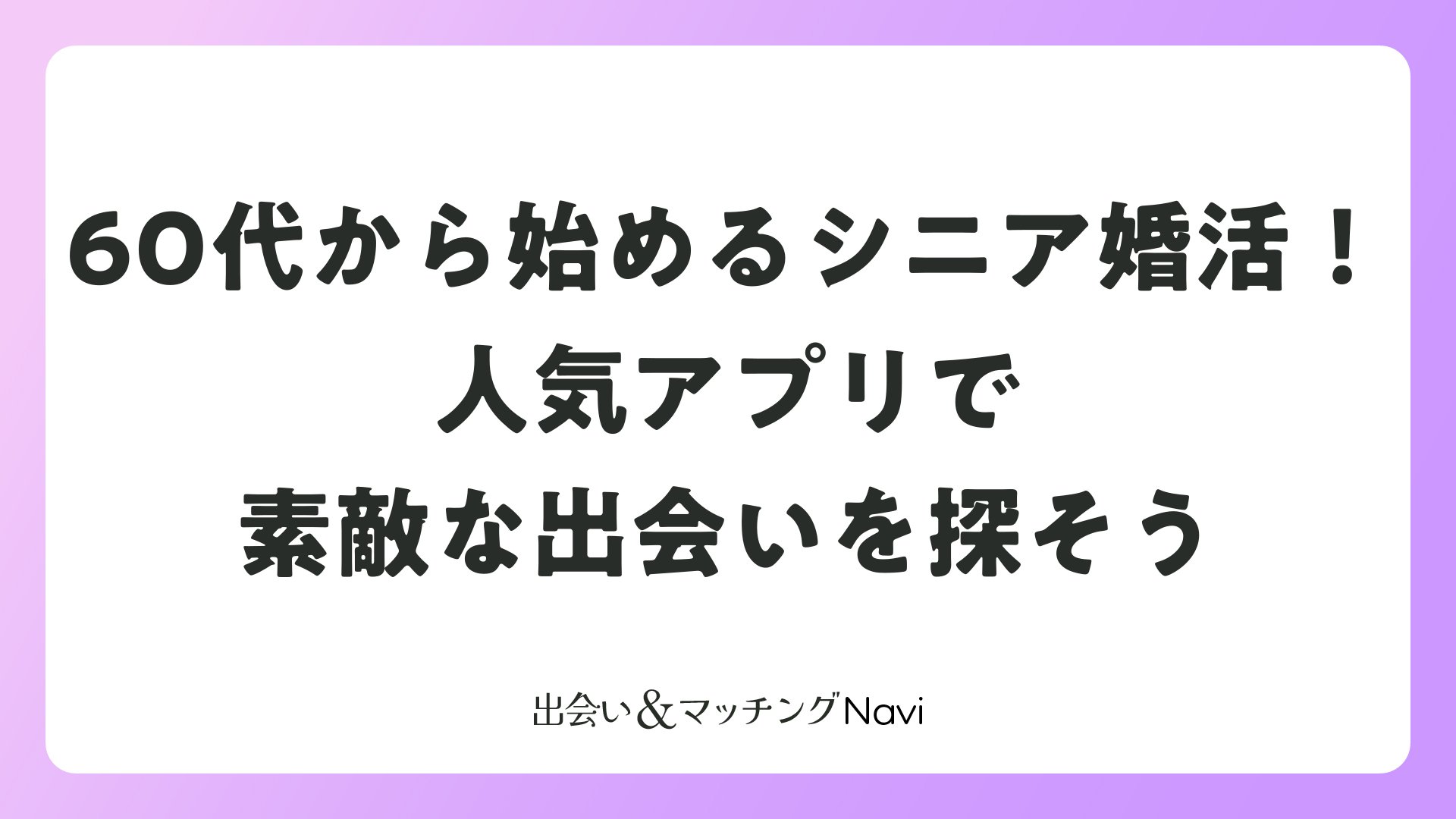 60代のシニア婚活は、人生の豊かな経験を活かした新しいパートナー探しのチャンスです。マッチングアプリの進化により、同世代の真剣な出会いが身近になりました。この記事では、60代向けの人気マッチングアプリを厳選し、効果的な活用法を紹介します。