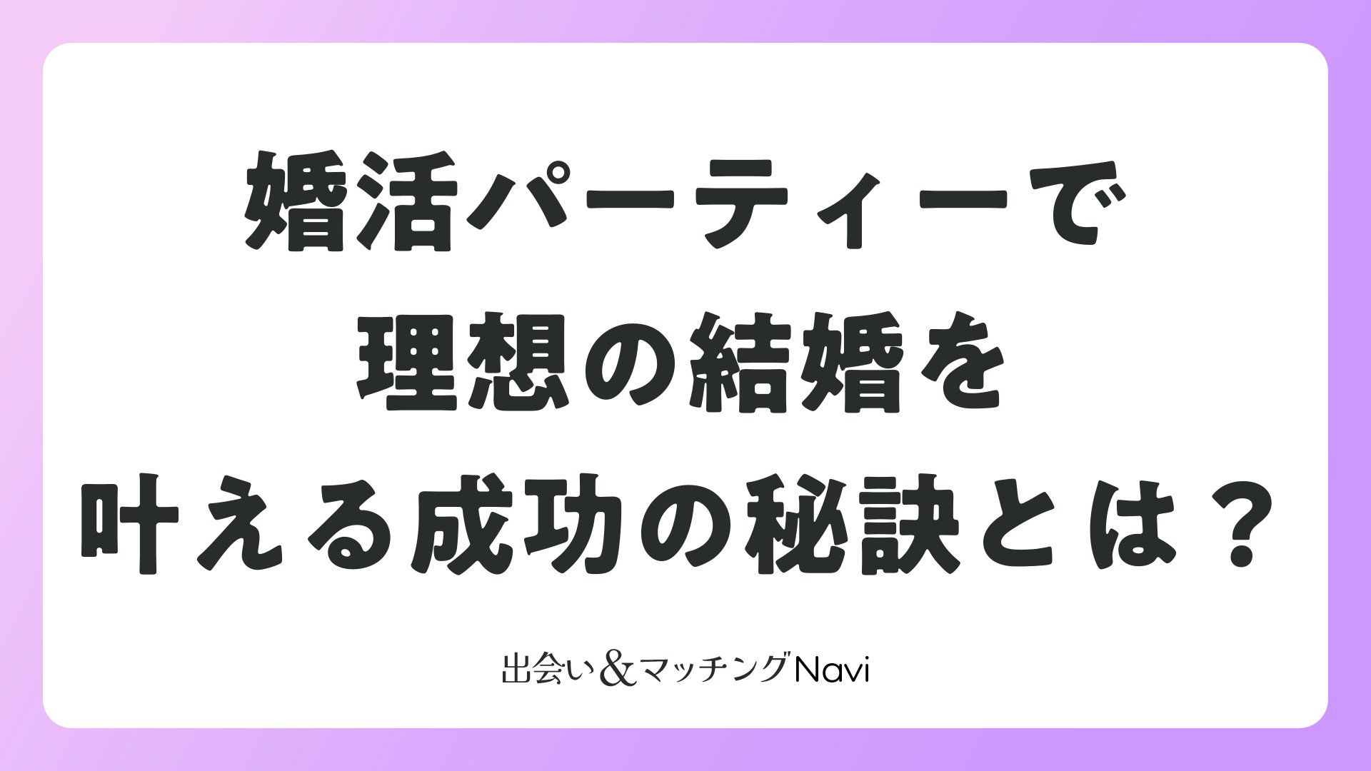婚活パーティーは、結婚を真剣に考える人々が集まる場として人気を集めています。この記事では、婚活パーティー結婚を実現するための具体的なポイントを、事前準備から当日行動、当日の振る舞いまで詳しく解説します。マッチングアプリやお見合いイベントと並んで、リアルな出会いを求める方にぴったりの方法です。
