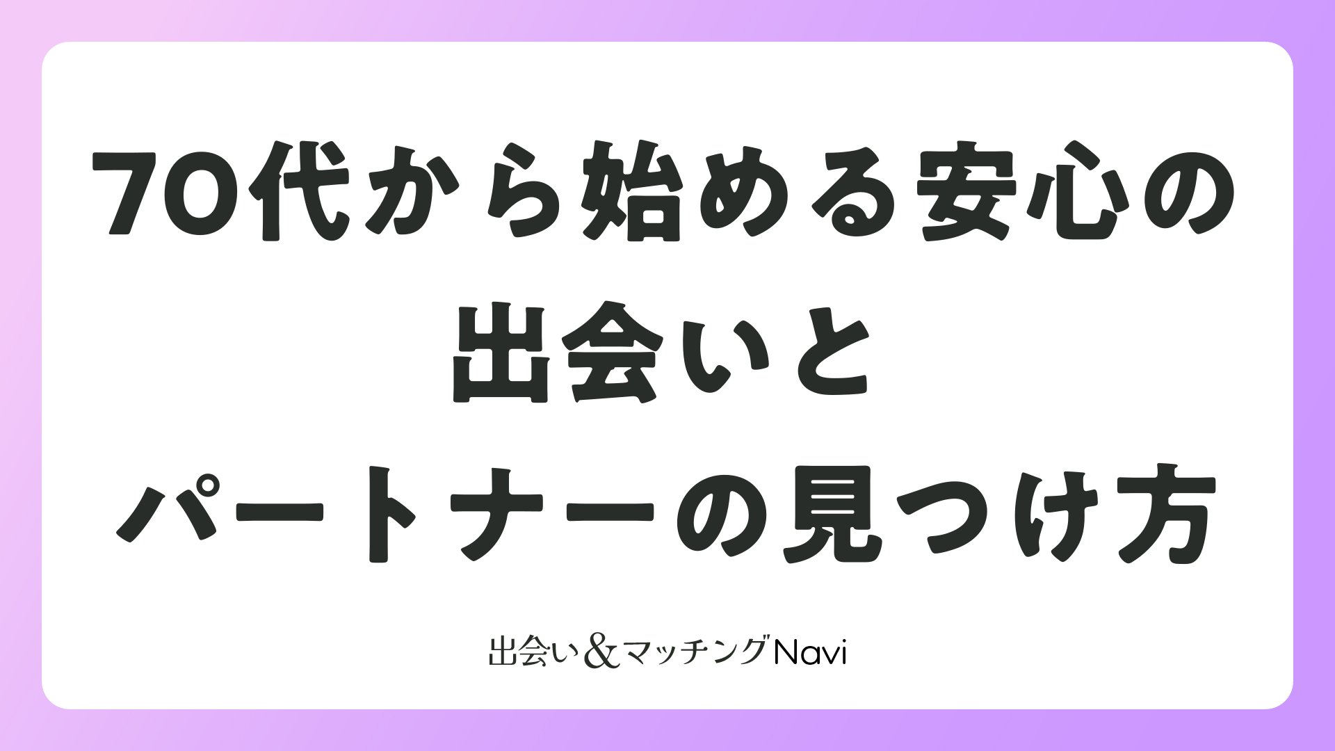 70代から始める安心の出会いとパートナーの見つけ方をまとめました