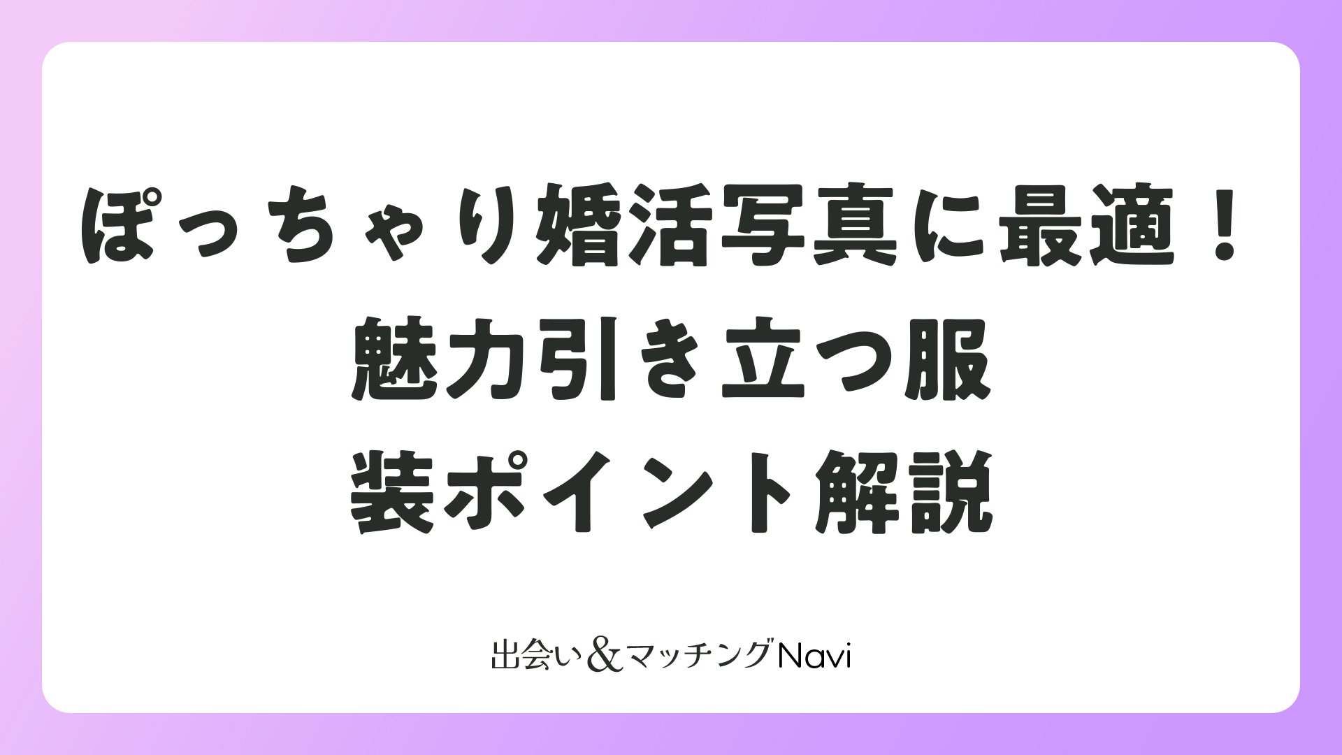 婚活写真は、第一印象を決める重要な要素です。特にぽっちゃりさんの場合、適切な服装選びで自然な魅力を最大限に引き出せます。この記事では、マッチングアプリや婚活パーティー、プロフィール写真で活躍する、ぽっちゃりさん向けの服装ポイントを詳しく解説します。体型を活かしたスタイルで、自信を持って婚活を進めましょう。