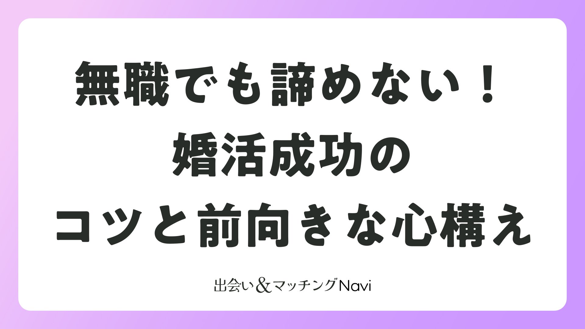 無職でも諦めない!婚活成功のコツと前向きな心構えをまとめました