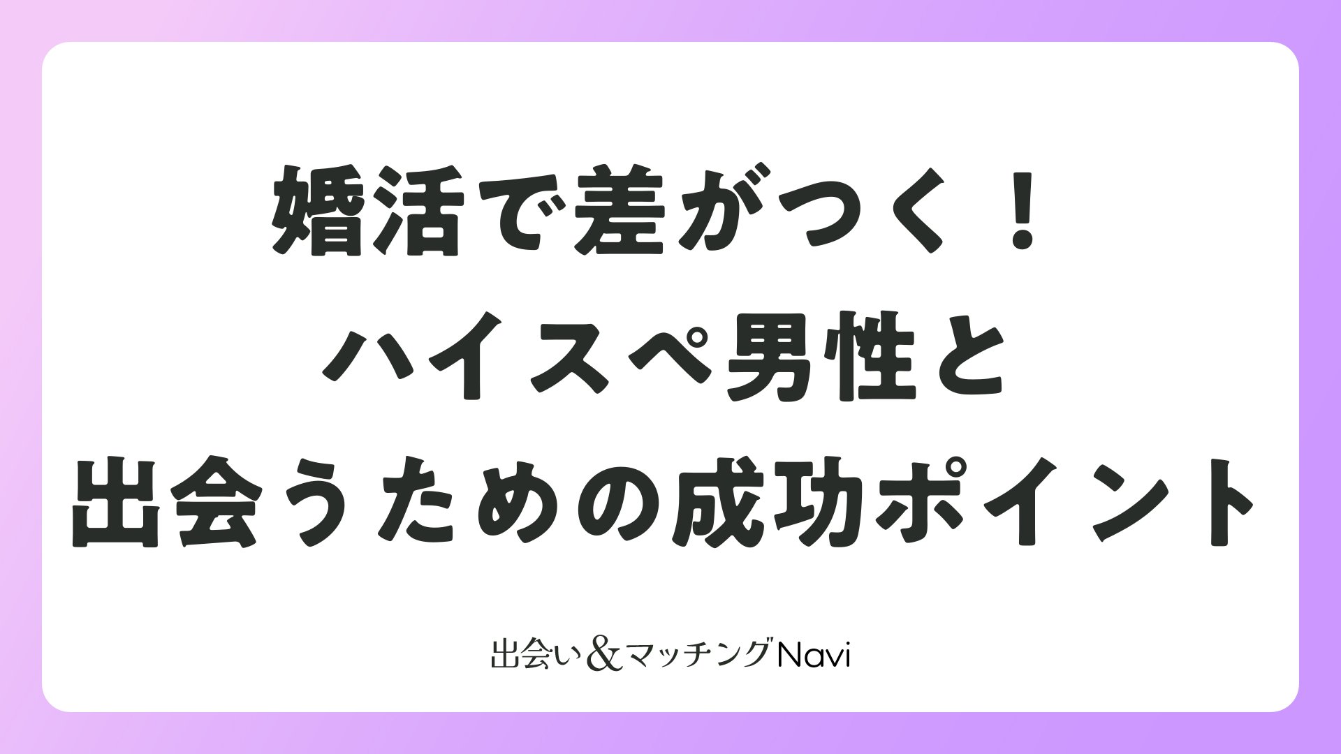 婚活市場で注目される婚活ハイスペとは、高収入・高学歴・高身長などの優れた条件を備えた男性を指します。この記事では、マッチングアプリや婚活パーティー、結婚相談所を通じてこうしたパートナーと出会う方法や、成功のためのポイントを詳しく解説します。読者の皆さんが理想の結婚を実現するための実践的な情報を満載しています。