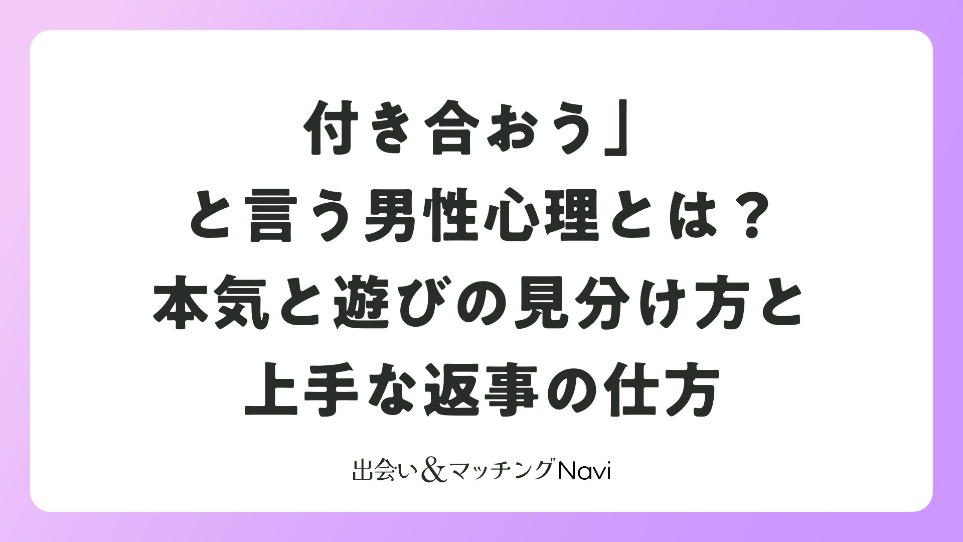 この記事では、「付き合おう」と言う男性の本音を深掘りし、本気と遊びの見分け方、マッチングアプリでの告白タイミング、そして告白されたときのベストな返事の仕方まで詳しく解説します。恋愛やマッチングアプリでの出会いに悩んでいる方は、ぜひ参考にしてください。