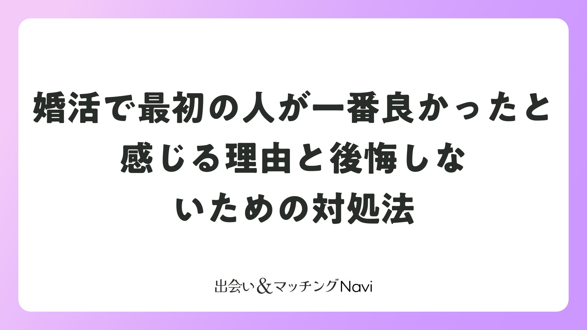 婚活で最初の人が一番良かったと感じる理由と後悔しないための対処法をまとめました