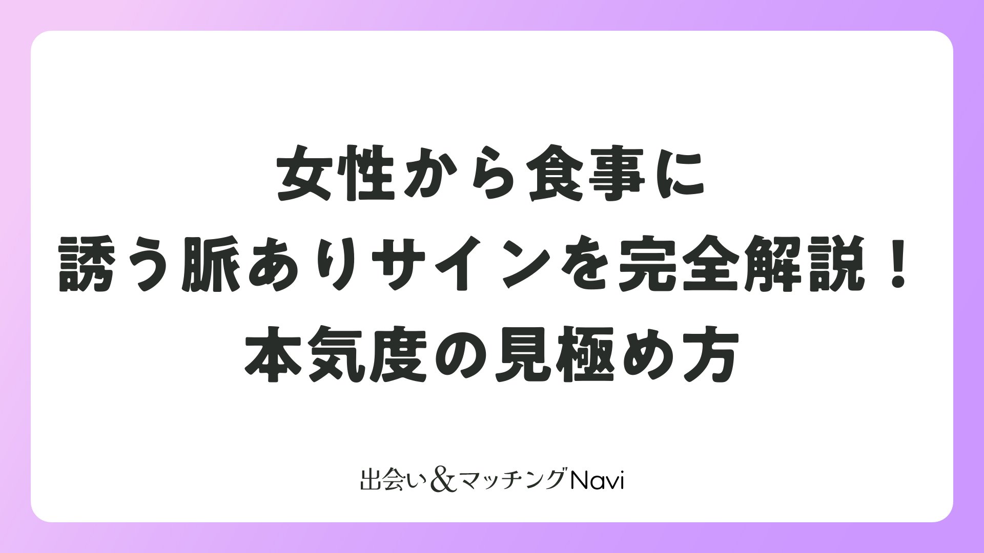 女性から食事に誘うという行動は、単なる社交辞令ではなく、多くの場合何らかの好意のサインです。二人きりを希望する、ディナーを指定する、お店選びに気を配る、あなたの好みを覚えている、質問が多い、次の約束をにおわせる、といったポイントが揃えば脈ありの可能性が高いと言えます。逆に、他の人を誘おうとする、お店選びが雑、日程がかなり先といったサインが見られる場合は、友人関係や軽いノリの誘いかもしれません。マッチングアプリで知り合った女性の場合は、それまでのメッセージのやり取りや頻度も併せて判断することが大切です。