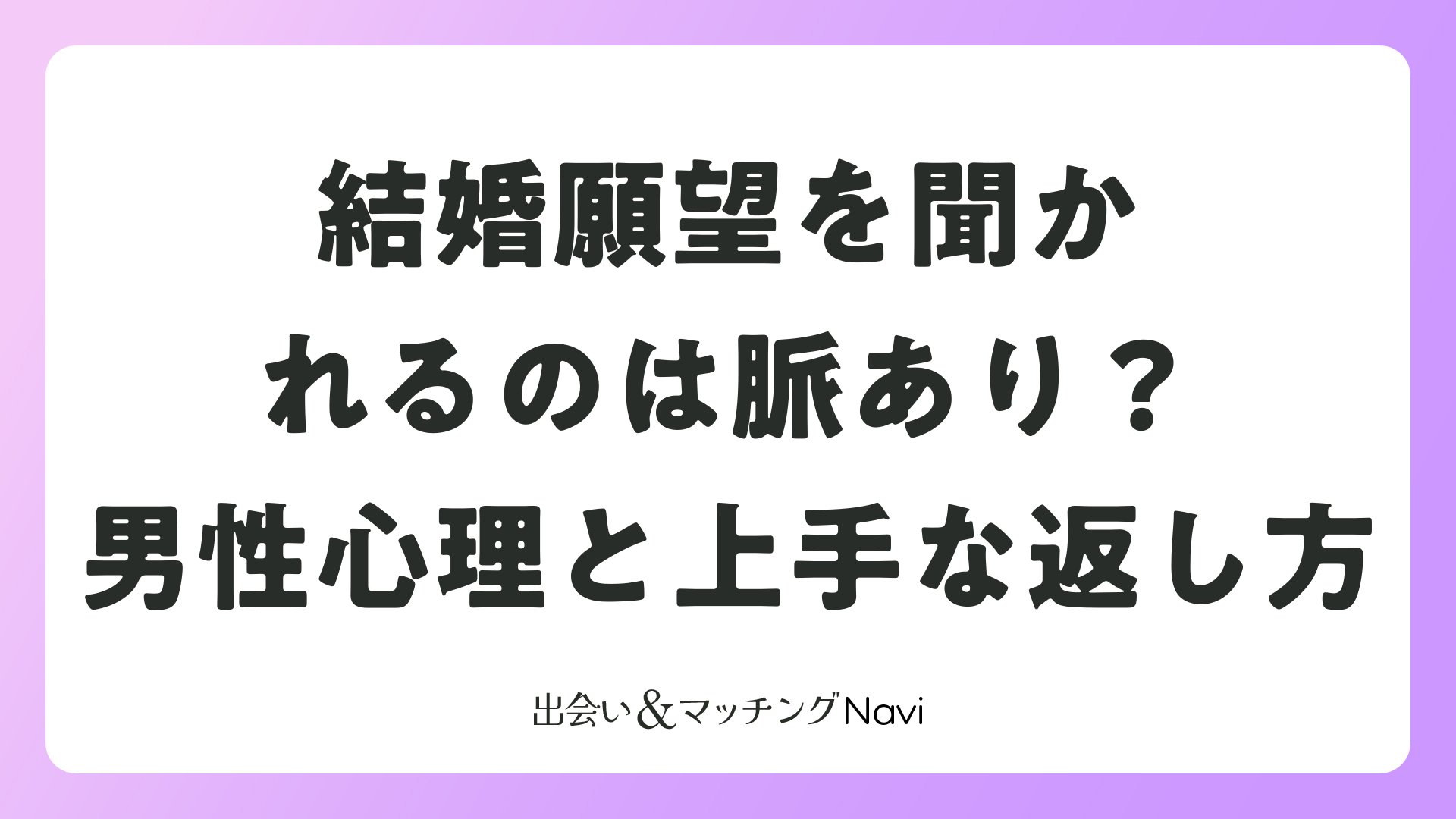 結婚願望について尋ねられるのは、相手があなたを真剣な対象として見てくれている可能性が高い、嬉しいサインです。背景には「本気で結婚を考えている」「あなたとの未来を想像している」「価値観を確かめたい」といった前向きな心理が隠れていることが多く、会話の深まり方や具体性、家族の話題への広がりなどを見れば、脈ありかどうかをより正確に見極められます。聞かれた際は、素直でポジティブな答え方を意識し、相手にも質問を返してお互いの価値観をすり合わせていけば、関係は自然と次のステージへと進んでいくはずです。