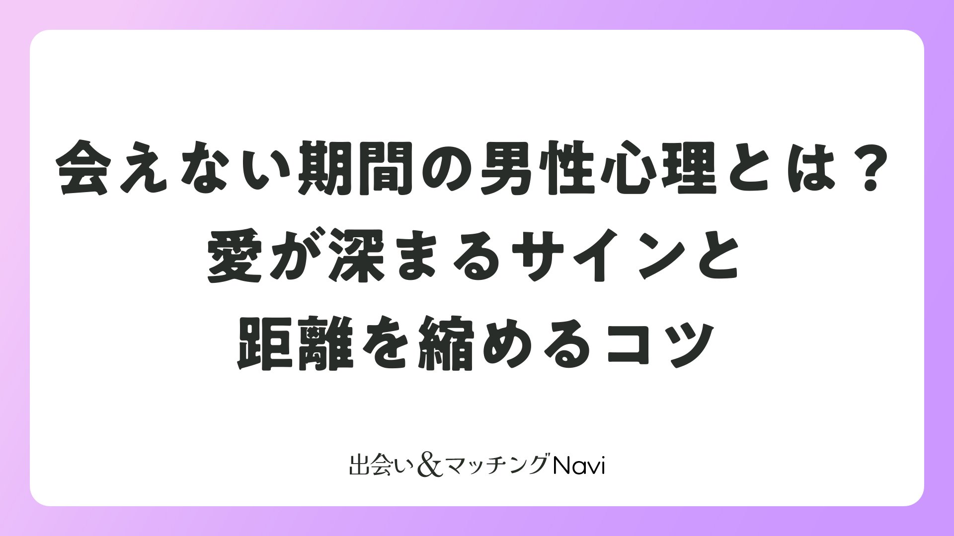 好きな人や恋人、マッチングアプリで知り合った男性と、しばらく会えない時間が続くと「彼は今、自分のことをどう思っているんだろう」「気持ちが冷めてしまっていないかな」と不安になりますよね。仕事の繁忙期、遠方に住んでいる相手、家族の事情など、会えない理由はさまざまです。実は、会えない期間に男性がどんな心理になるかは、関係性の段階や相手のタイプによって大きく違うことが分かっています。ここでは、会えない期間に働く男性心理を徹底的にひも解き、その時間を「愛を深めるチャンス」に変えるための考え方や接し方を丁寧に解説します。