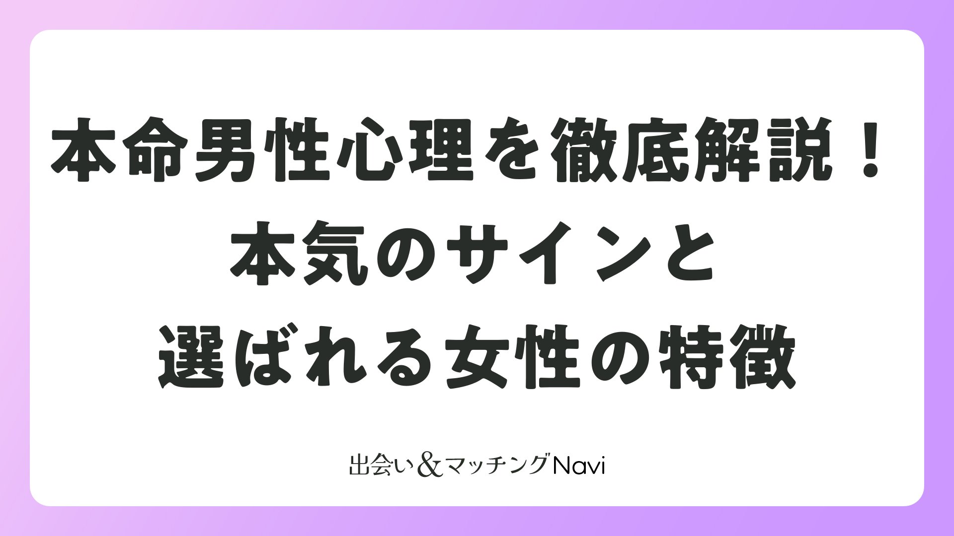 「彼は私のことを本命として見てくれているのかな?」「遊びなのか本気なのか分からない…」恋愛やマッチングアプリで知り合った男性との関係に、そんな不安を抱えている女性は少なくありません。男性は好きな女性に対して、無意識のうちに特別な態度や行動を取るもの。その本命サインを知っておくと、相手の本気度を見極められるだけでなく、自分自身も安心して関係を深めていくことができます。この記事では、本命男性の心理や行動の特徴、LINEやデートでのサイン、本命に選ばれる女性の共通点まで、恋愛や婚活に役立つ情報を幅広く紹介していきます。