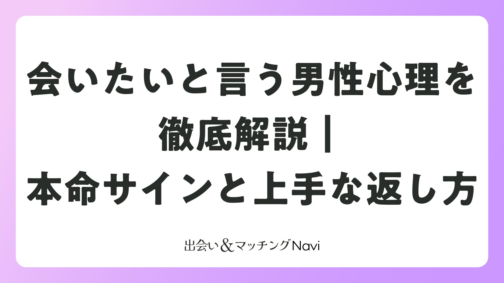 マッチングアプリや婚活の場で出会った男性から「会いたい」と言われると、嬉しい気持ちと同時に「これって本気?それとも社交辞令?」と戸惑う女性は少なくありません。特に付き合う前の微妙な関係性のときは、相手の本音が見えにくいため、判断に迷ってしまうもの。この記事では、男性が「会いたい」と言うときに隠されている心理を多角的に解説し、本命サインの見分け方や脈ありと脈なしの違い、そして気持ちが伝わる上手な返し方まで丁寧にご紹介します。恋愛を一歩前進させたい女性にとって、ヒントが詰まった内容になっています。