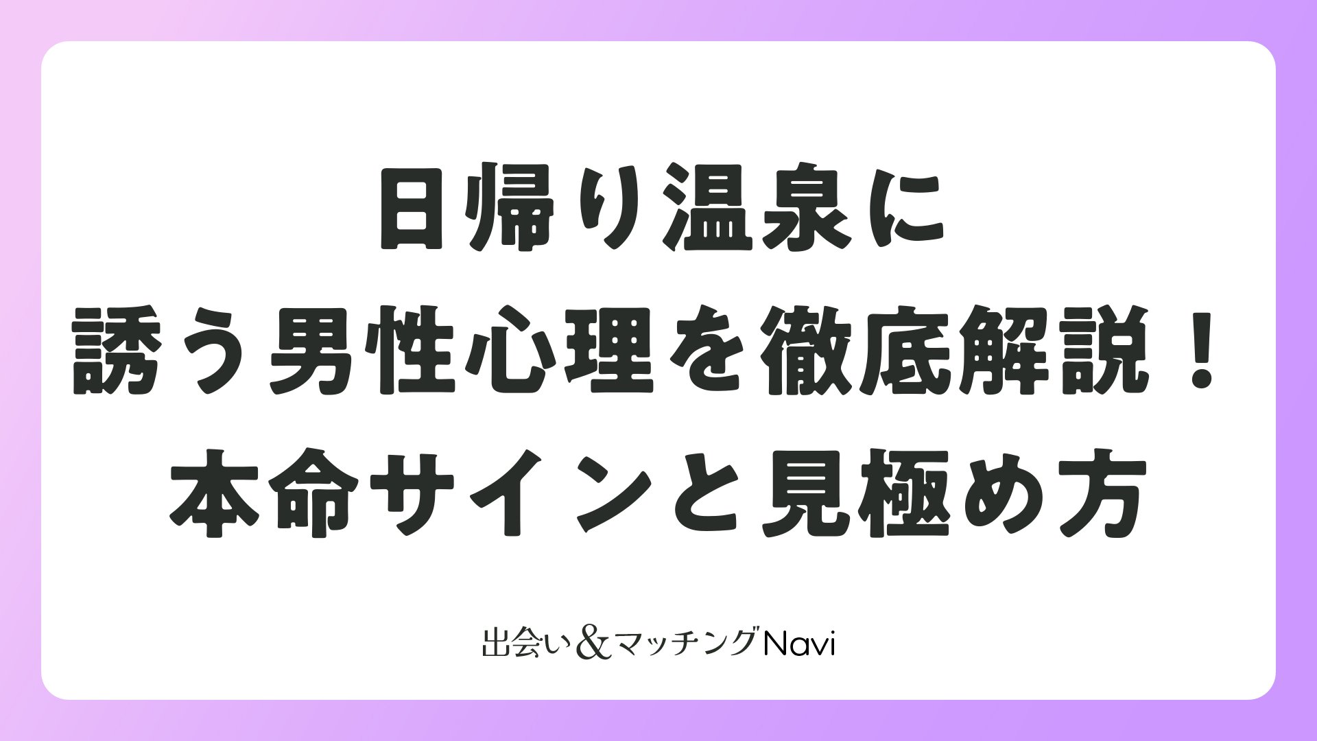 男性が日帰り温泉に誘ってくる背景には、本命としての真剣な気持ち、価値観のすり合わせ、共通の趣味共有など、さまざまな心理が隠れています。本命サインを見極めるカギは、誘い方の丁寧さ、日帰りという配慮、前後の連絡、そして過去のデート回数。気が進む相手なら「日帰りなら嬉しいな」と一言添えて受けるのが上手な返事です。マッチングアプリや婚活で出会った相手との温泉デートは、3〜5回目以降の近場・日中プランが安心。温泉という非日常を上手に使って、お互いの距離をぐっと縮めていきましょう。