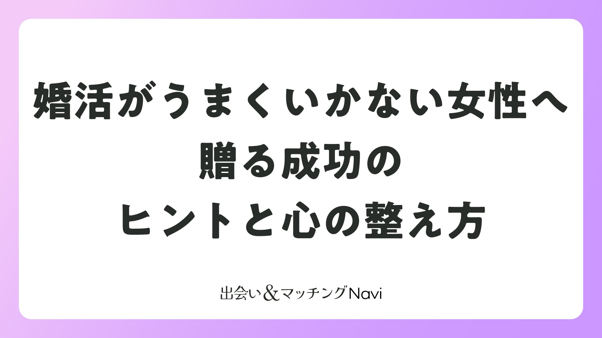 ポイント:婚活の悩みは多くの女性が通る道。自分を責めすぎず、「やり方を見直すチャンス」と捉え直すことが、次の一歩につながります。