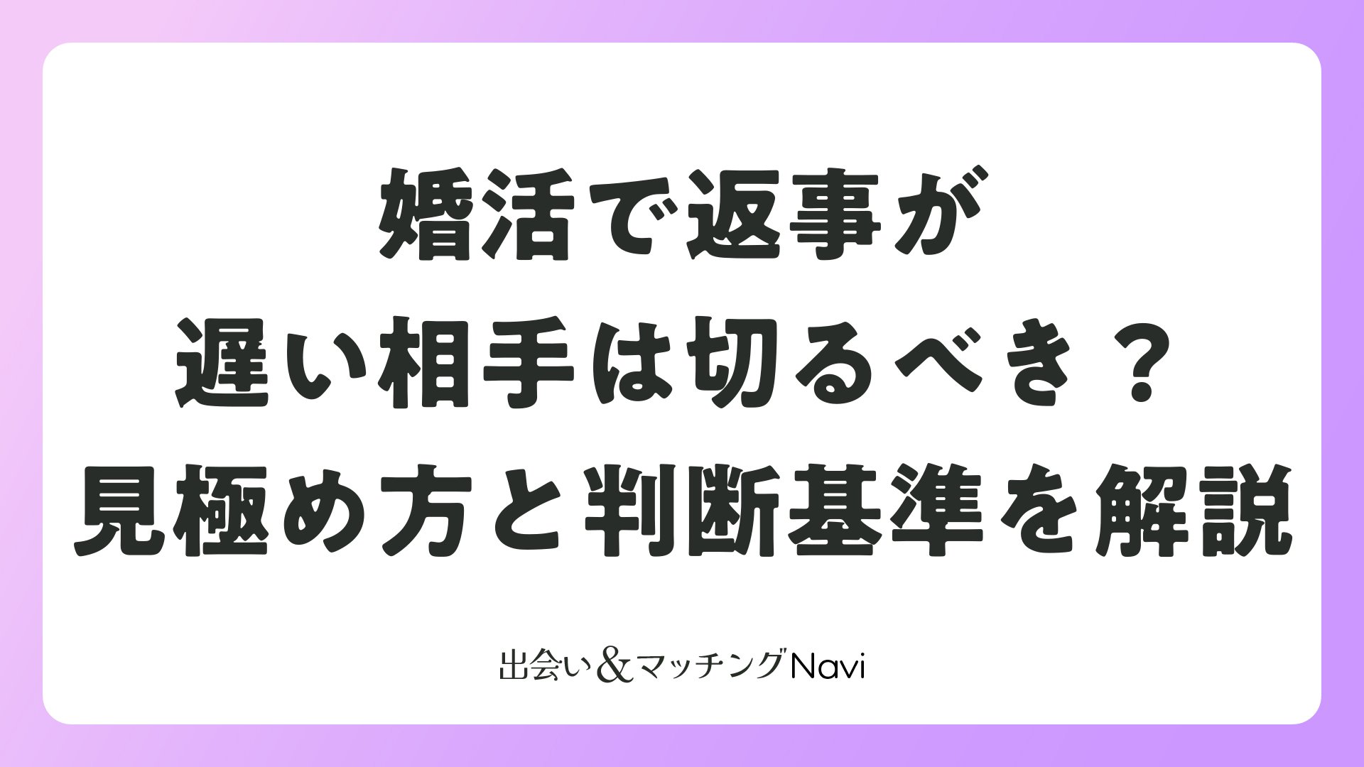 婚活やマッチングアプリでやり取りをしていて、相手からの返事が遅いと不安になるものです。「待っているけれど一向に返信がこない」「既読はついているのに何時間も音沙汰がない」といった状況が続くと、このまま関係を続けるべきなのか、それとも見切りをつけて次の出会いに進むべきなのか判断に迷います。本記事では、婚活で返事が遅い相手の心理や、切るかどうかを冷静に判断するための基準、そして実践したい対処法までを丁寧にまとめました。読み終わるころには、自分らしいペースで婚活を進めるためのヒントが見つかるはずです。