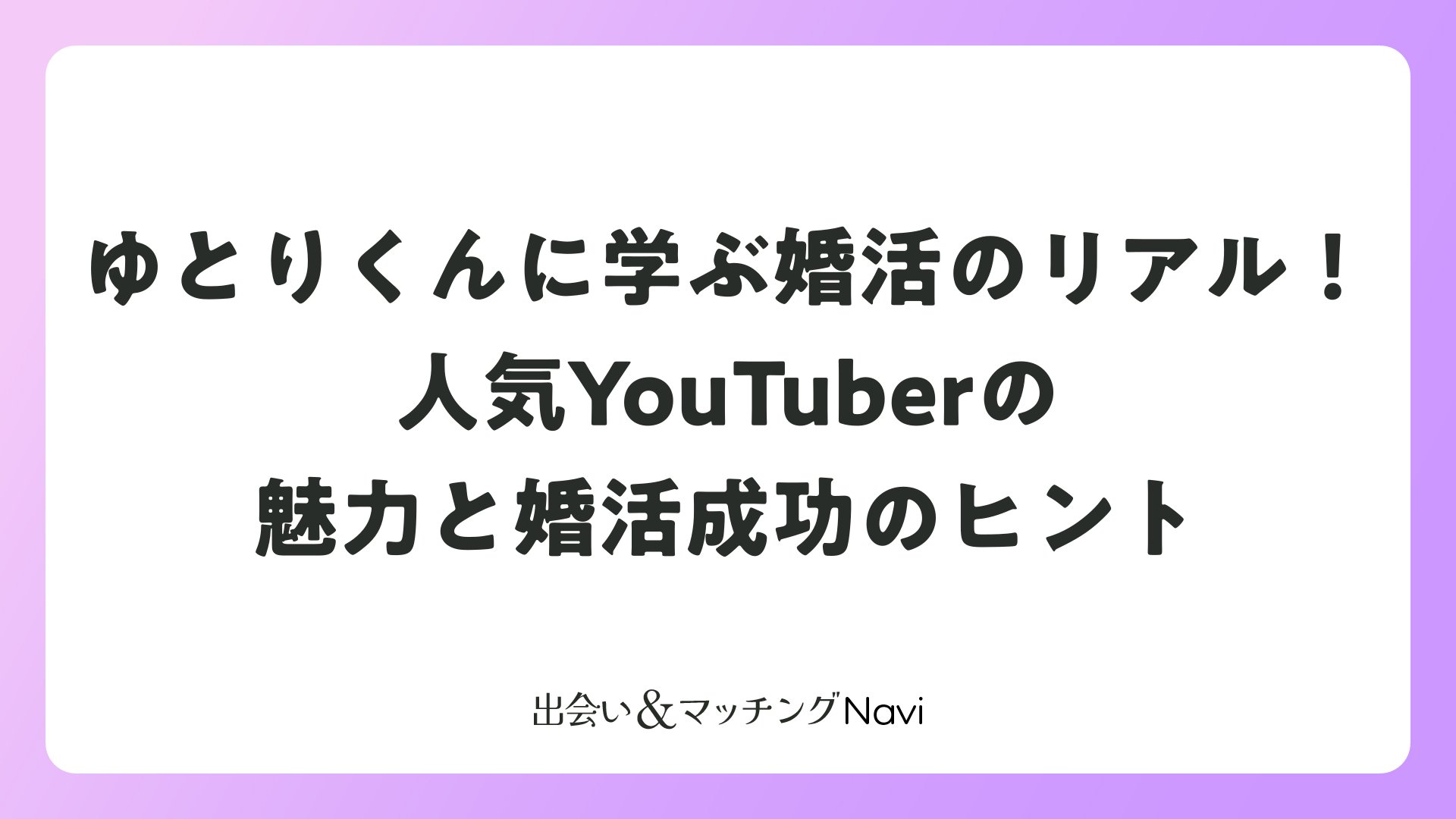 ゆとりくんに学ぶ婚活のリアル!人気YouTuberの魅力と婚活成功のヒントをまとめました