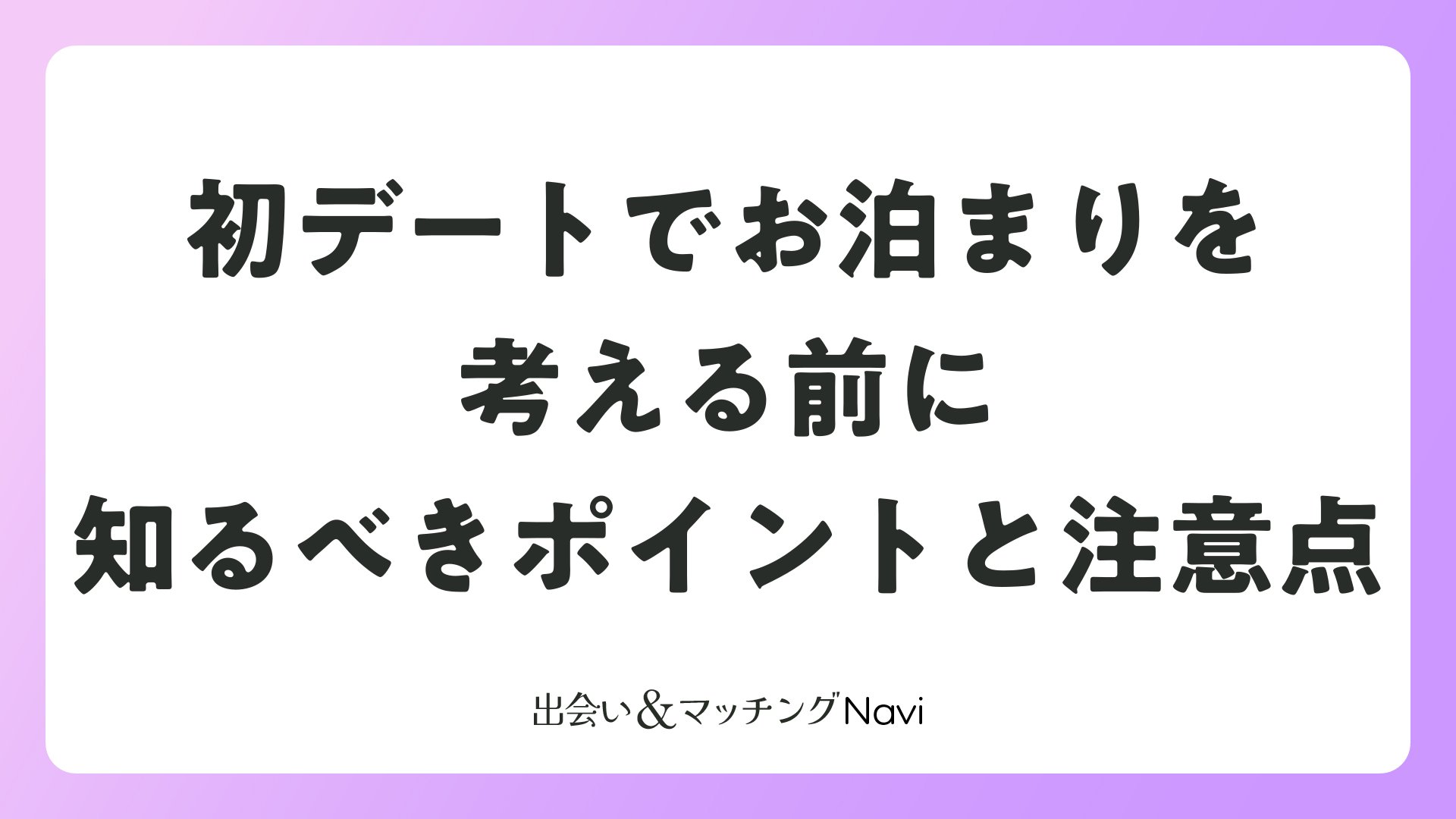 マッチングアプリで出会った相手とのデートが盛り上がると、自然と「次のステップ」を考えたくなるものです。特に相手との相性が良く、時間を忘れて過ごしてしまった場合、初デートでお泊まりを提案されたり、自分から提案したいと考えたりすることもあるでしょう。しかし、初デートでのお泊まりは、その後の関係を大きく左右する重要な決断です。本記事では、初デートでのお泊まりについて、実際の声や心理的な側面から、判断基準と成功のコツをご紹介します。