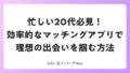 出会い男はマッチングアプリの宝物。プロフィールの充実度、メッセージの丁寧さ、デートの主体性で彼らを見極めましょう。真剣アプリを選び、自分磨きをすれば、素敵な恋愛や婚活が待っています。今日から実践して、理想のパートナーをゲットしてください。