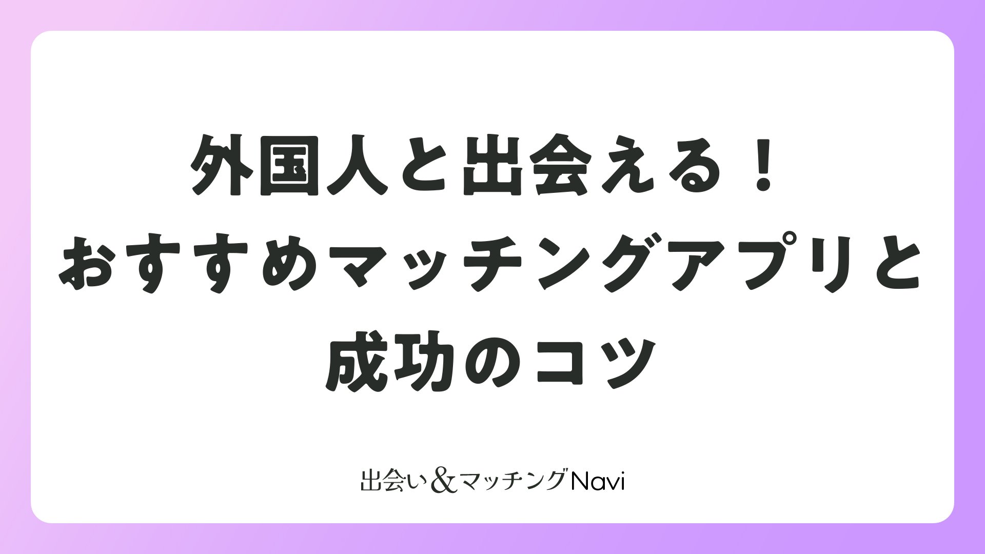 外国人とマッチングアプリで出会うのは、国際恋愛や異文化交流の素晴らしい機会です。おすすめのKiseki、Pairs、Langmate、Tinderなどを活用し、プロフィール充実や検索活用のコツを実践すれば、きっと理想の相手が見つかります。読者の皆さんの恋活・婚活が成功することを応援しています!